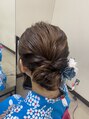 浴衣に似合うヘアセットです(^^)浴衣の華やかさに負けないように髪もふわふわにまとめあげ♪デートでも友達とお祭りでもどちらもおすすめです◇