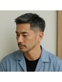短めに整えたトップとフェードの効いたサイドが爽やかなショートスタイル。前髪は横に流し、清潔感と大人の落ち着きを演出。