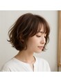 全体にふんわりパーマをかけたショートボブ。柔らかいウェーブ感が自然な動きを出し、ナチュラルで可愛らしい雰囲気に仕上げます。