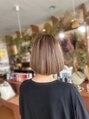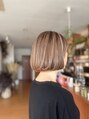 全頭ブリーチ履歴のありのデザインカラー。ブリーチ後にブリーチ部分とブリーチをしてない部分の差がかなりはっきりでます。表面のみにハイライトを施して、境目をわかりにくくしてます。動きもでてかわいいです♪