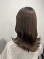 スタイルを気に入っていただけましたら【ブックマークする】ボタン/【ハートマーク】を押して、カウンセリング時にスタッフにお見せください。S字に巻いて鎖骨の長さになるようカットしています。重ためのラインですが毛量調節はしっかりとしています。