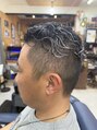 マンバンスタイルからバッサリのフルモデルチェンジ仕様です!極道パーマとメッシュカラーを施術。このお客様は、刈り上げ部分を伸ばしていくので今回は襟足だけを整えております。最後にムラシャンしてフィニッシュです!