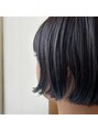 切りっぱなしの前下がりボブ/偽黒染めのブルーブラック