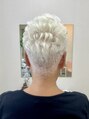 ご年配のミセススタイル。自毛のホワイトカラーが素敵です。自毛が直毛なのでパーマをかけてあげる事で、質感が柔らかいイメージになり、ショートでもよりエレガントなスタイルになりますよ。
