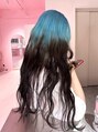 エメラルドブルー/ルーツカラー/デザインカラー/波巻き/ロング/ホットペッパービューティー