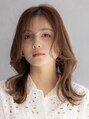 上品なくびれロングスタイル。ひし形シルエットを意識したスタイルは、頭の形を綺麗に見せてくれます。長めのシースルーバングはサイドにつながるようにカールし、ふんわり可憐なスタイルに仕上げて。