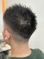 サイドとバックをすっきり刈り上げ、トップに束感を出したメンズスパイキーヘア。清潔感があり、ビジネスシーンにもプライベートにも合わせやすいスタイルです。メンズカットや刈り上げスタイルをお探しの方におすすめ