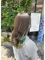 インナーカラーはブリーチ1回で明るめの緑をご希望でしたので1回で抜けるだけ抜き明るめの緑を入れました!全体カラーもインナーカラーと合うように入れました!!