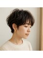 全体にふんわりとしたパーマをかけたショートスタイル。動きのあるカールが立体感を生み、柔らかく華やかな印象に仕上げます。