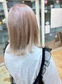 - 20代30代シルキーピンクベージュ透明感カラー大人可愛いセミディ