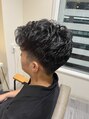 ジェットモヒカン気味のパーマスタイルです毛先が前に来るとエッジが効いてかっこいいです!