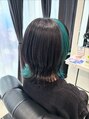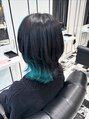 黒髪ボブウルフ インナーカラー ブルーブラック レイヤーカット