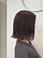 肩につかない切りっぱなしボブです!少し外はねにしてオイルをつけてあげると可愛らしく仕上がります!ストレート気味にするとモードな雰囲気にも◎