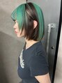 黒髪ベースに鮮やかなグリーンを効かせたハイライトボブ。シンプルなボブに遊び心をプラス。人と被らないデザインカラーが得意です。