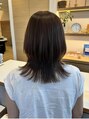 顔まわりから毛先にかけてレイヤーを入れた、軽やかなくびれミディ。毛先の外ハネで抜け感を演出し、暗髪でも重たく見えないのが魅力。スタイリングも簡単で、朝のセットも時短に。大人の抜け感ヘアにおすすめです。