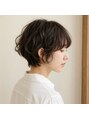 全体にふんわりパーマをかけたショートスタイル。襟足まで自然に収まり、柔らかなカールが軽やかさと立体感を演出し、上品で可愛らしい印象に仕上げます。