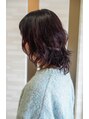柔らかな動きを出したウルフレイヤーに、ゆるやかなパーマをプラスしたスタイル。軽さとラフな束感が合わさり、抜け感のある大人カジュアルな印象に仕上がります。自然なウェーブが髪に立体感を与え、スタイリングも簡単に決まるのが魅力です。