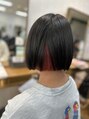 インナーブリーチ1回、オンカラーでピンクを入れてます。切りっぱなしボブにカット