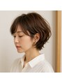 全体にふんわりパーマをかけたショートスタイル。襟足まで自然に収まり、柔らかなカールが立体感と軽やかさを演出し、ナチュラルで上品な印象に仕上げます。
