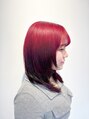 鮮やかなレッドがしっかり発色しつつ、毛先は濃いグレーと赤でルーツカラーに。原色すぎない赤がオシャレポイントストレートスタイルでツヤ感を引き立たせ、肌も明るく見えるカラーです。個性的なカラーを楽しみたい方や、人と差をつけたい方におすすめ
