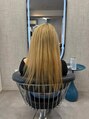 ハイトーンでプリンが伸びていましたが、地毛はブリーチなしでグラデーションにカラーをしてプリンも目立たなくし、エクステはブロンドのエクステのみ取り付け★表面15本 枚はプルシールエクステでギリギリまで上に取り付けハイライト感を出しています♪