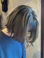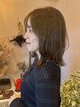大人ミディアムとオリーブベージュカラー*毛先は重めに、顔まわりにはレイヤーを入れて、ナチュラルな軽さに◎グリーン系のカラーで、淡い柔らかい雰囲気によりなります。大人女性におすすめです。