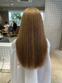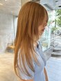 顔まわりにしっかりレイヤーを入れて、動きと軽さをプラス。明るいオレンジベージュが光を受けるたびにツヤっと輝き、柔らかな印象にしてくれます!スタイリングは毛先を軽くワンカールするだけで華やかに◎