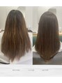 5cm程カットし、美髪カラーとプレミアムトリートメントをさせて頂きました。軽すぎるとまとめる時にまとめにくくなってしまうと言うことでしたのでそそまで軽くはしていません。カラーはベージュベースで落ち着いてるけど透明感のあるカラーです。