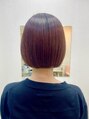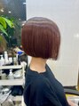 アシンメトリーなボブスタイル。ボブはボブでも、左が短く、右に行くにつれ長い、少し個性的でオリジナルなデザイン。カラーは、ブラウンレッドで素敵なカラーですよ。