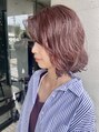 適度に重さを残したボブベースに、全体的に柔らかく動きが出るパーマをかけています。カラーは8トーンのピンクラベンダー。ナチュラルな明るさのピンクに暗めのバイオレットとくすみピンクを加えた大人の暖色のカラーに。