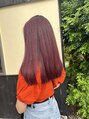 ワンカラーで作った血色感のあるピンクレッドに持ちのいいぷつっとカット。重ためスタイルだからこそカラーは色味しっかりめに!※髪質によりダブルカラー必須