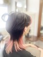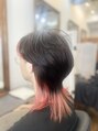 メンズウルフレイヤーです。襟足にブリーチして、レッド系のカラーを入れています。
