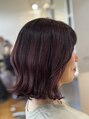 肩上で結べる長さのボブ。アレンジ自由ブリーチデザイン(ハイライト+インナー)ルビーバイオレットカラー