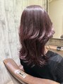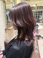 トーン暗めのピンクレッドのカラーです。秋らしいお色に仕上がりました。カットは少しくびれたスタイルにするためトップにレイヤーを入れました。【立川/白髪ぼかし/インナーカラー/リタッチ/ハイライト/縮毛矯正/ブリーチ/カット】