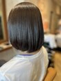 クセが気になるけど伸ばしていきたいお客様に縮毛矯正をかけたスタイルです。普段からストレートアイロンを多用しているので熱ダメージが感じられましたが、トリートメントやタンパク質でしっかり補いツヤツヤストレートに仕上がりました。