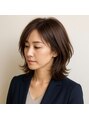 自然な目線と柔らかな動きが魅力のミディアムスタイル。顔まわりにレイヤーを入れて軽やかさを出し、ふんわりとした空気感を演出しました。上質なジャケットと落ち着いたカラーで、大人の女性らしい上品さを引き立てます。