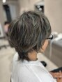 ブリーチハイライトでしっかり明度差をつけ、オリーブグリーンで赤色に仕上げました。