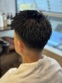 ショートツーブロックです。トップの部分を短くしているのでスタイリングが楽かとお思います。刈上げ部分はアレンジできますのでご相談ください。お好きな整髪料でどうぞ!