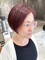 キリッとした印象の前下がりショートボブ。耳に掛かる長さはヘアスタイルに表情が出ます!普段の生活でも扱いやすくおすすめです。カラーリングはこの秋おすすめのピンクバイオレット。特にツヤを出すのが得意なカラー剤を使用しています。