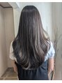 オリーブグレージュのくすみ感がとてもステキです♪前回シークレットハイライトを入れているので暗髪でも透き通る透明感が演出されます♪