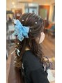 イベント用ヘアアレンジ。ハーフアップの部類ですが、左右のツイン編み込みは編み方を変えて後ろからも可愛く。もちろん顔まわり、正面はしっかり可愛くバランスを整えて。どの方向から見ても可愛いアレンジです。