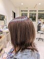 ブリ―チを使わず、パサつきを抑えながら明るくしました!また服装や季節にもあうような秋色のブラウンを加えた ” ミルクティーブラウン ” !今回の髪質は色落ちで黄色みやオレンジみが多く出てくるので色落ちもキレイになるよう隠し味にはグレーも!?