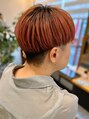 大胆なツーブロックと丸みのあるマッシュラインが印象的な個性派ショート。ビビッドなカラーで遊び心をプラスしつつ、軽やかな抜け感も演出。