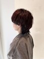 周りと差がつく、洒落感MAXスタイル。エッジを効かせたレッドカラーに、ウルフベースのカット。毛先の動きが際立つよう、ツイストパーマで無造作な質感に仕上げました。