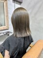外ハネスタイルです。自然と肩に当たって外ハネになるのでアイロンを軽く倒すだけでバッチリです♪赤みを抑えたオリーブカラーで透明感をプラス、グレーのかすんだ感じも相性バッチリです!