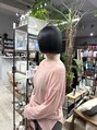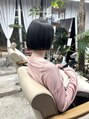 ブリーチ後の暗めカラーがかわいい綺麗なラインで作る切りっぱなしボブ