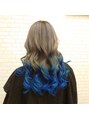 胸上あたり長さの大人女性美髪縦巻き髪ラウンドロングレイヤーStyleです☆全体3回毛先4回ブリーチ後、毛先ホリッカーBlue中間根元ラベンダパープルベージュをglobalミルボン髪質改善7カスタマイズトリートメントで手触り良い潤艶な大人女性美髪スタイルに☆