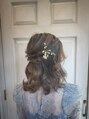 編み込みハーフアップ/ゆるふわアレンジ/パールアクセ付きヘア