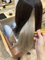 ロングウルフにインナーカラーを合わせました。ホワイトベージュとダークブラウンの組み合わせが可愛い(^^)