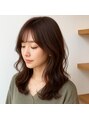中間から毛先にかけてふんわりとカールをつけたデジタルパーマで、軽やかで柔らかな動きを演出。自然体の大人っぽさと上品な印象を両立したミディアムスタイルです。